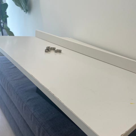 String reol i hvid med træhylder skåret i identiske mål ved trælast