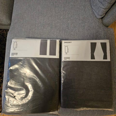 Gardiner fra IKEA i modellen Annakajsa. Fejler ikke noget. Bemærk at farven er mørkegrå og altså ikke den samme som på screenshottet.
