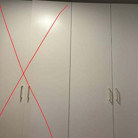 Det er standard skab med 2 hylder til og ophæng til bøjler. Fin stand, men 60 dyb, så fyldte i vores soveværelse.