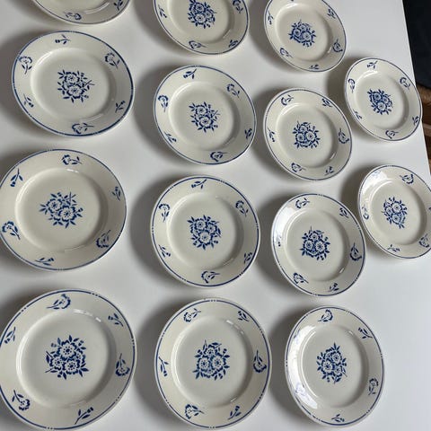 Porcelænen er meget fin og tynd, håndmalet, med naturlige spor af alder.