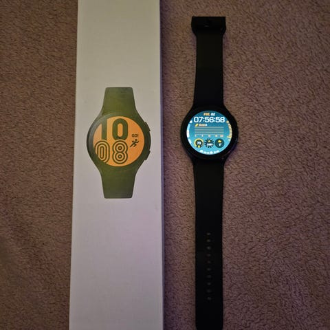 Jeg har fået et nyt ur i julegave og skal derfor ikke længere bruge mit ellers elskede Samsung Watch 4, som fungerer helt upåklageligt. Jeg håber, der er andre, der kan få glæde af det. Oplader medfølger naturligvis også
