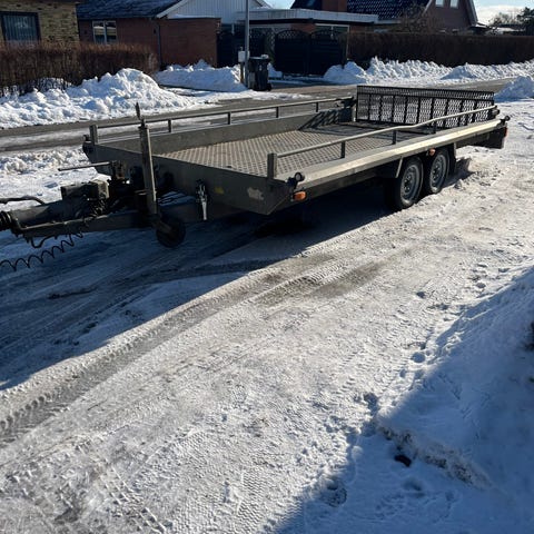 Sælger denne Hambaur maskintrailer som har fået en gennemgående overhaling.