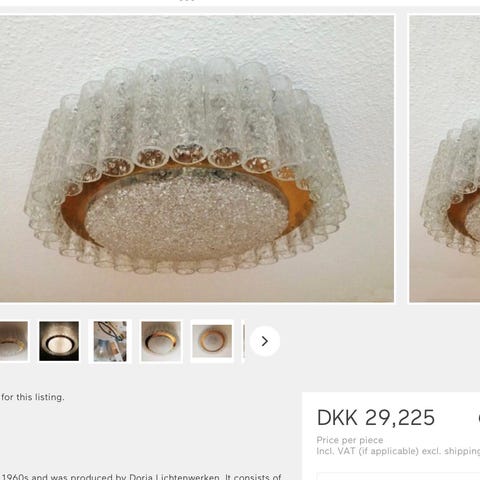 Har den som loftlampe som kan monteres direkte på loftet eller nedhænges i wire, har den også med messing pendelrør og Baldakin ( 5800kr)