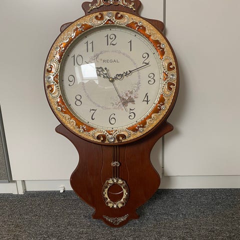 Ur, Royal, Messing urskive. Romertal. Egetræ. 43 x 22 cm. Vejer 2500 gram.