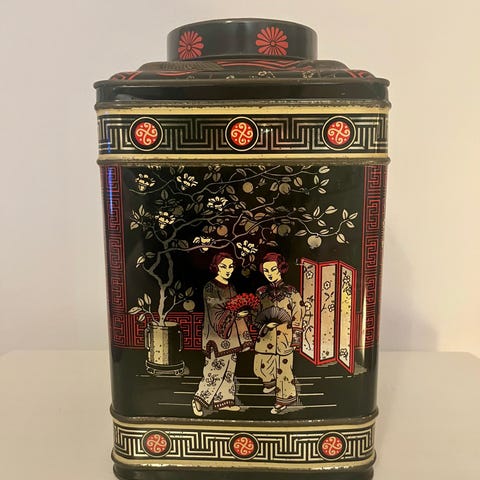 5 flotte, kunstneriske kinesiske metal tedåser ca.26 x 17 cm