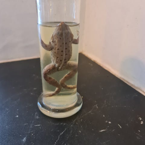 Gammel vådpræpareret firben konserveret i glas beholder 200 kr