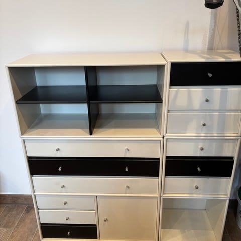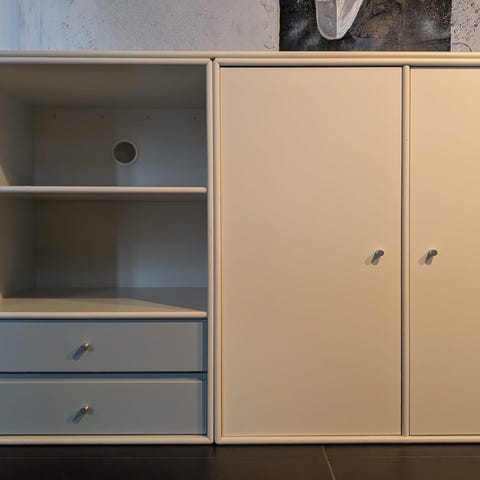 5 stk montana moduler sælges for 1200 kr per styk. De 3 som hænger på væggen har dybde 30 cm De 2 som står på gulvet har dybde 38 cm…Ved køb af de 2 moduler som står på gulvet medfølger Montana bordplade så man har til skrivebord. Alle moduler står næsten fejlfrit og uden ridser - eneste lille skramme er på bordpladen (se billede)..