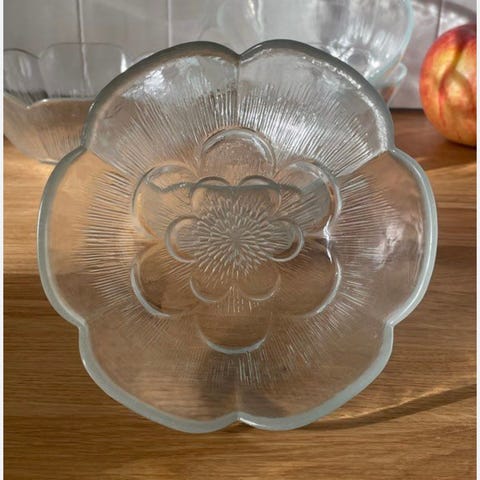 Skål og flødekande i smukt rødt glas. Det hedder Randi og er fra det svenske glasværk Gullaskruf og sælges stykvis.