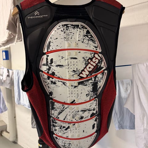 Sælger en fin brugt rygbeskytter i størrelse L Dame. Kan også bruges af en mand - ved ærligt ikke hvad forskellen på de to skulle være) Har lige været brugt på en tur til Sverige. Den beskytter ryggen ved styrt eller påkørsel. Meget behagelig at have på den den tilpasser sig kroppen. Sender gerne for 50.