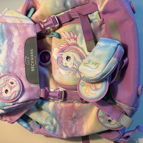 Sælger Beckmann Classic Set skoletaskesæt i Unicorn Princess Purple (lilla). Et komplet og praktisk sæt til skolestart med god bærekomfort og integreret regnslag.