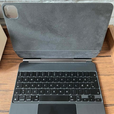 Apple Magic Keyboard til iPad Pro 11" i sort farve. Tastaturet fungerer som både beskyttelse og tastatur, med indbygget trackpad. Designet til at give en komfortabel skriveoplevelse og beskytte iPad'en mod ridser og skader.