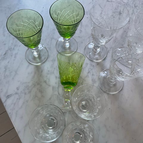 5 rødvinsglas, 8 hvidvinsglas, 6 champagneglas og 6 portvinsglas i flot og god stand.