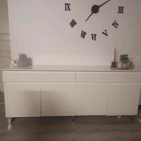 Udgået skænk fra IKEA. Model Malsjö. Nypris 3900 fra 2022. To store skuffer og skydelåger. Har nogle brugsspor som ses på billederne men som ikke har betydning for brugen.