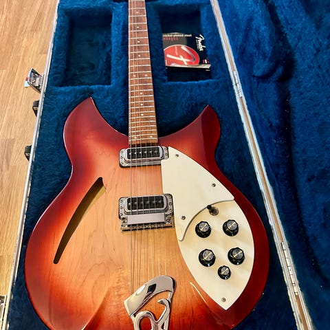Jeg købte guitaren for et par år siden af en Rickenbacker samler. Guitaren er fra maj 1975 udfra nummeret på bridgen.