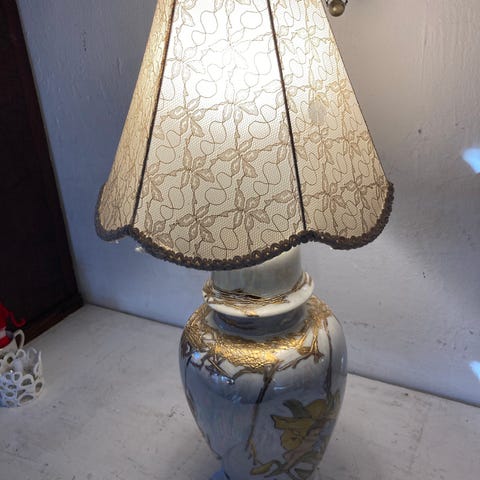 Håndmalet porcelæns bordlampe sælges. Motivet er lyse sommerblomster.