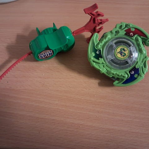 Gammel og stor Beyblade Dragoon fra dengang – meget brugt, men virker stadig.