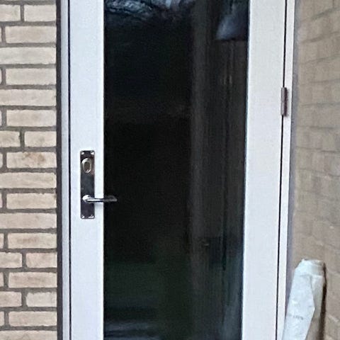 Hvidmalet træder, med alubund. Højre ind. 95,0 x 205,0