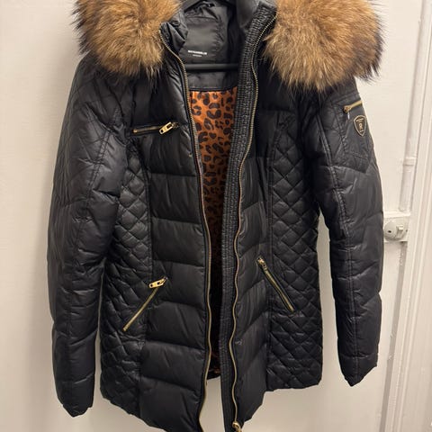 Lang dunjakker (88 - 90 cm )fra ROCKANDBLUE er i slimfit og har en racoon pelskrave