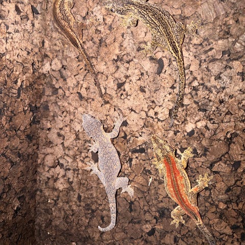 Sund og velfungerende gargoyle gekko, der har spist, skidt og fået skiftet bundlag regelmæssigt. Gekkoen er i god trivsel og klar til at flytte til et nyt og passende hjem.