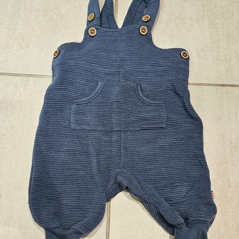 Mørkeblå overalls/smækbukser med justerbare stropper og knapper. Smækbukserne har en lille lomme på brystet og en broderet detalje med et "T" og "Roar!" på det ene ben.