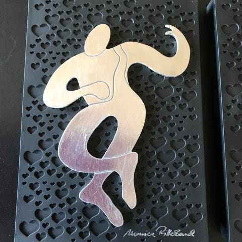 Skulpturel sølvbelagt relief udført i bemalet stål 1 ud af 4 Skifter farve efter lysindfald