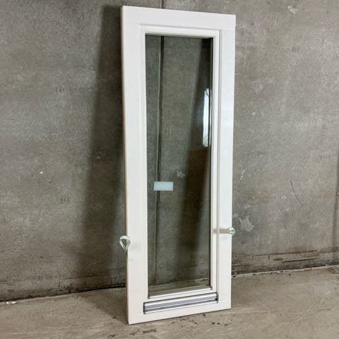 Dreje-kip vindue i træ med 2-lags energi rude og alu bund glaslister. Overfladeridser forekommer.
