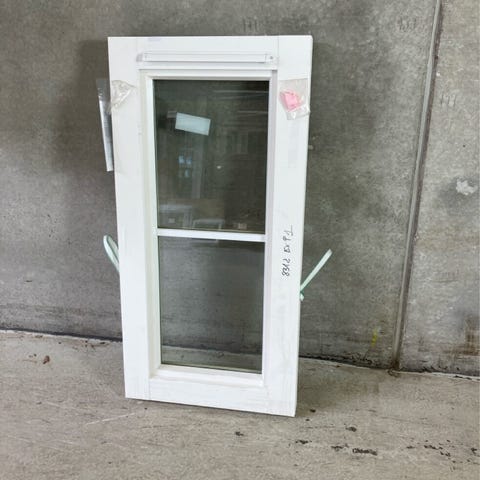 Dreje-kip vindue i træ med 2-lags energi rude og alu bund glaslister. Overfladeridser forekommer.