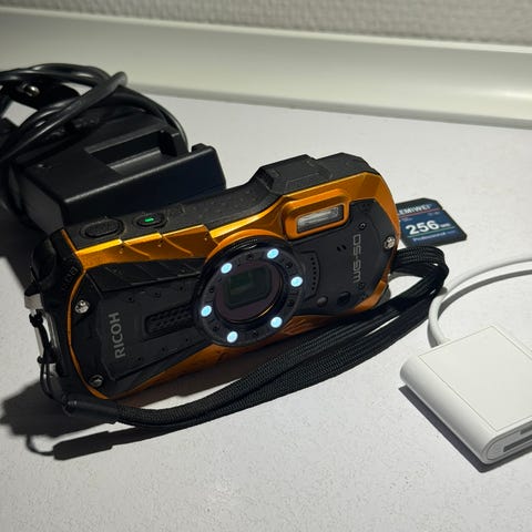 Sættet består selvfølgelig af kameraet med godt batteri og oplader, kabel til overførsel af billeder, taske samt et SD kort på 8GB.