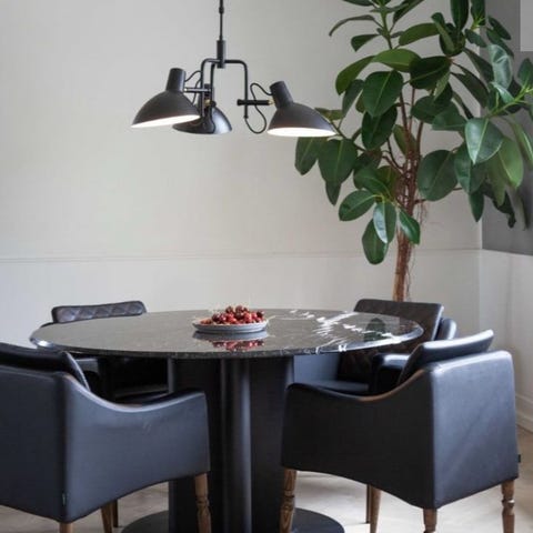 Halo Design messing Metropole lysekrone med 3 justerbar skærme, tænd/ sluk ovenpå skærmen. Justebar stang, hvor højt lampen skal hænge.