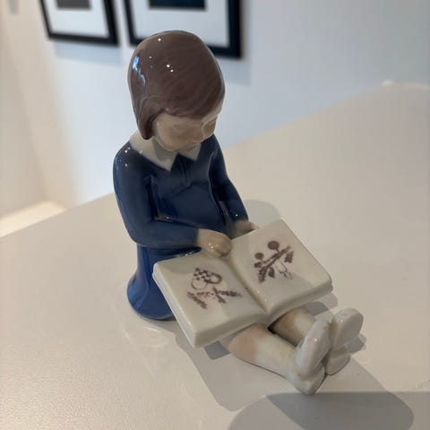 Smuk og klassisk porcelænsfigur fra Bing & Grøndahl, model nr. 2278. Figuren forestiller en siddende pige med en buket blomster og er udført i de karakteristiske bløde farver og fine detaljer, som B&G er kendt for.