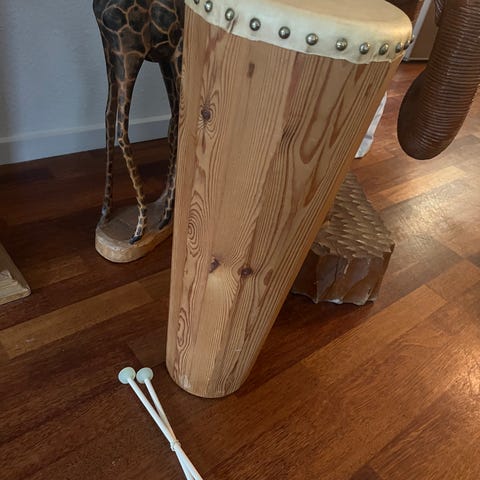 Stavtromme (rytmiktromme) højde 70cm, Dia 20cm, med stramt skind og god lyd.