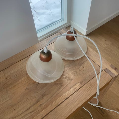 2 stk. røgfarvede lampeskærm/pendel fra Ikea (modellen Jakobsbyn). Lamperne er mundblæste.