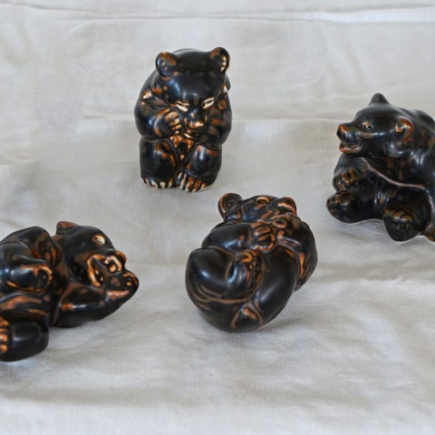Royal Copenhagen stentøjsfigurer af bjørneunger, designet af Knud Kyhn.