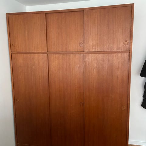 Jeg vile gætte på at det har været et 60'er garderobe i teak. Det er dog blevet malet. Malingen står ret pæn, hvis man kan lide farven.