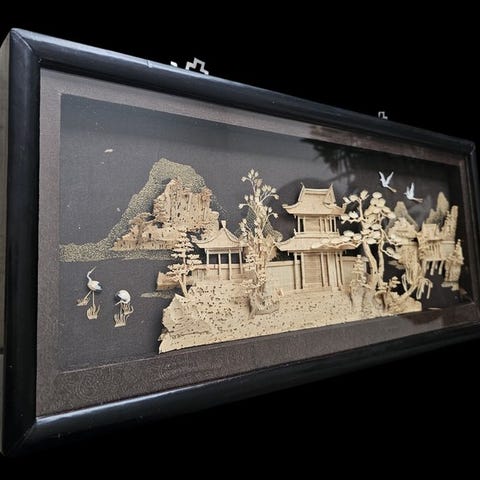 Scene med krostue med 3D figurer, af spillemand krokone, og 2 gæster. diameter 34 cm meget gammel, kunstner ukendt. enkelte skramme i kanten, motivet helt intak prisen er sat ned til 100 kr. fast pris.