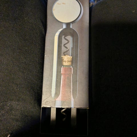 Håndlavet vinåbner med skaft i træ. Designet med naturlige træformer og metalproptrækker. Velegnet til åbning af vinflasker.