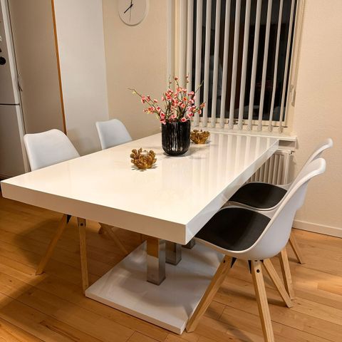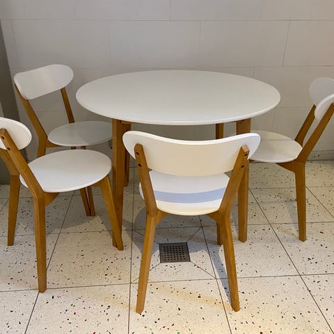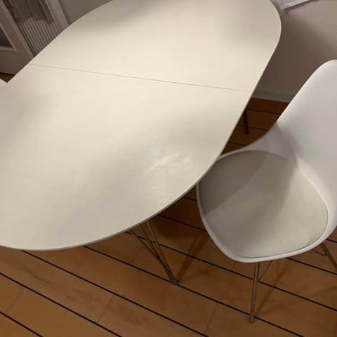Selger ett bord og to stoler, kjøpt på Jysk i september. Selger pga. flytting. Selges som det er, men det er i god stand.