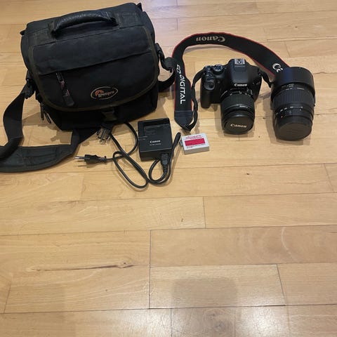 Inklusiv kamerataske og pose til linse.