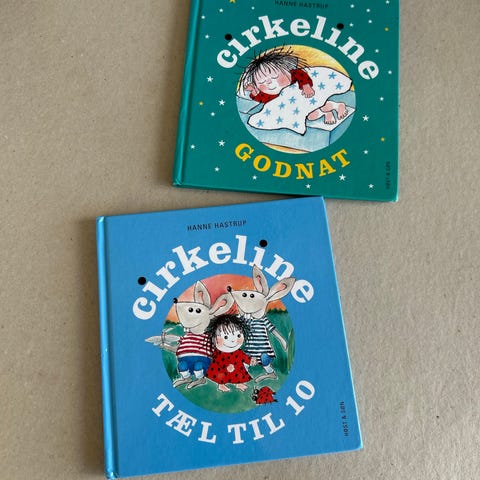 Sæt med tre Cirkeline børnebøger: 'Godmorgen' (gul cover), 'Godnat' (blåt cover) og 'Bliver Til' (rødt cover).