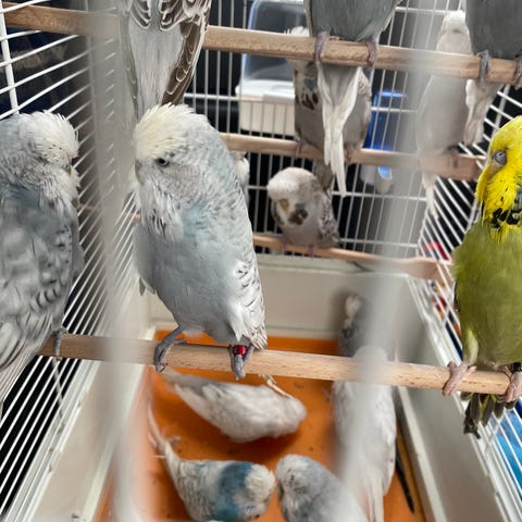 Vi sælger vores 3 undulater (en grøn, en gul og en hvid/blå), 1 dværg papegøje og 1 nymfeparakit.