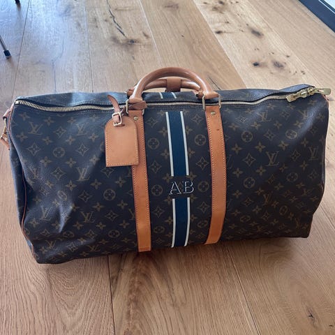 Flot Louis Vuitton Keepall 55 med lækker patina, i super stand. En sjælden udgave hvor enderne er firkantede i stedet for halvmåne formede, hvilket giver ekstra plads. Håndtagene er ikke originale, men håndsyet efter originalen. Ægthedscertifikat fra Galleri Klingert haves. Bredde: 24,5cm. Højde: 29,5cm. Længde: 55cm.