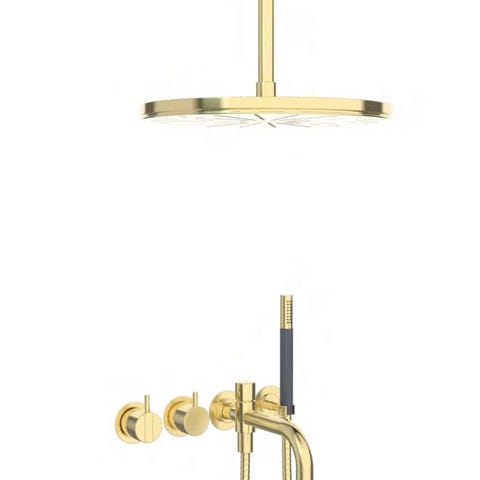 Komplet originalt VOLA brusesystem (060/060A) i krom med rainshower, betjeningsknapper og håndbruser. Professionelt nedtaget, originale æsker medfølger