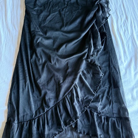 Kjole i sort fløjl, størrelse S, designet til kvinder. Materialet er blødt og har en karakteristisk tekstur, velegnet til formelle og fine selskaber