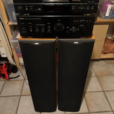 Bowers and Wilkins surroundanlæg med Denon forstærker og subwoofer