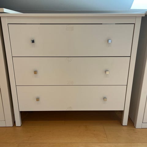 Kommode i metal med tre skuffer.