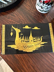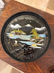 Produktet er en gammel manglebræt med et dekorativt mønster. Den er lavet af træ med en grøn lakering. Håndtaget er afrundet og har en mørkere træfarve.,Bemærk at mail, chat og beskeder ikke besvares, og varen skal købes på knappen "Gå til varen"