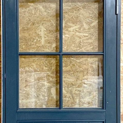 Brugt Terrassedør m. Over/Sidepartier, Træ/træ, højrehængt, udadgående, 2 lag glas, hårdttræsbundstykke, sidehængt/topstyret, mål: H244,8 B169,3 D11.5 Varenummer: 1530
