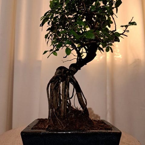 Kinesisk elm bonsai (Ulmus parviflora), ca. 15 år gammel, eviggrøn, oprindelsesland Nederlandene, træhøjde 26 cm, pot 19 cm, vægt 2 kg. Klik på den blå "gå til varen" knap, for at købe eller byde på denne vare. Den samlede pris vil blive vist inden du afgiver dit bud.
