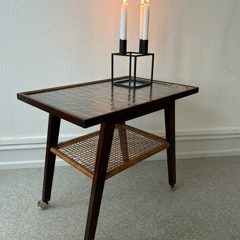 Sofabord - Træ - Oval lille bord med svaner.