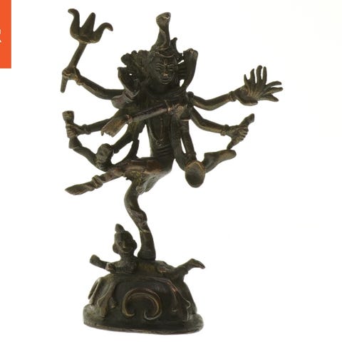 Skulptur af Hathors hoved fra egyptisk mytologi, brun-bronzefarvet koldkeramik fra Asien, 19 cm høj, 17,5 cm bred, 2 cm dyb, i fremragende stand, dateret til 2010–2020. Klik på den blå "gå til varen" knap, for at købe eller byde på denne vare. Den samlede pris vil blive vist inden du afgiver dit bud.